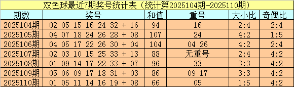 开奖回顾:双色球第2025110期奖号为:01 05 11 14 16 19 + 08,红球和值为66,奇偶比为4:2,大小比为1:5。蓝球开出偶数。