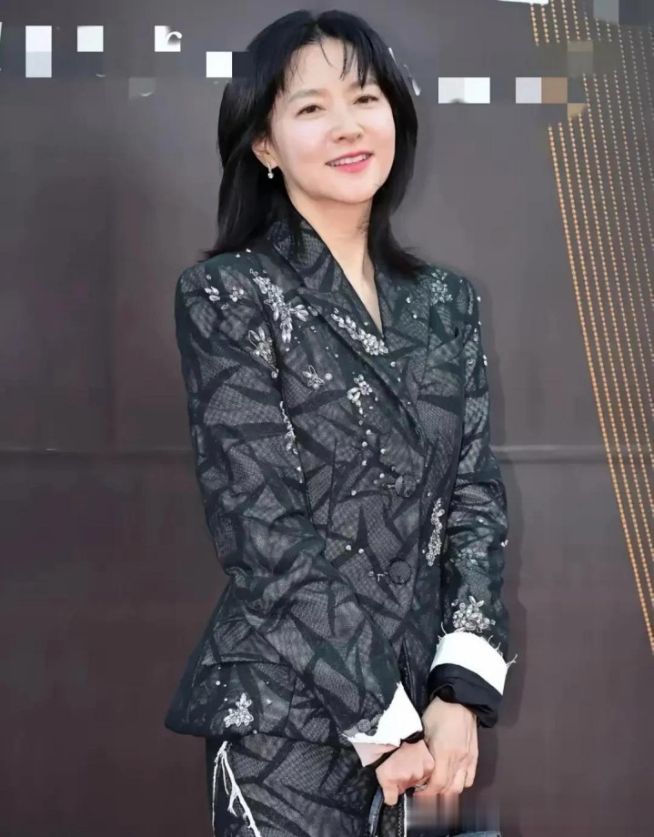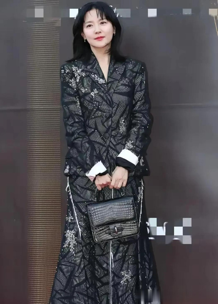 54岁李英爱增肥后更漂亮! 穿印花西装+半身裙, 美出新高度!