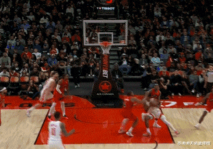 阿门突破失误,猛龙反击战,小史密斯奋力回防干扰后,杜兰特随后拍马赶到上演钉板大帽,成就阿门反击扣空篮。