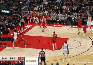猛龙又连续得分中59-54建立两个球优势,杜兰特接小史密斯传球,运一步,迎着两人的阵容右腰位轰进第二记中距离稳势。