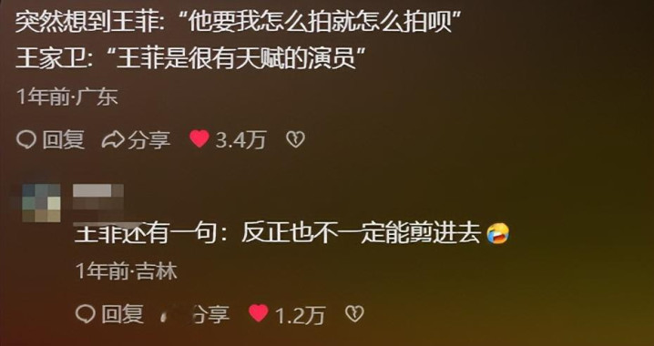 虽然王家卫喜欢压榨演员,但仍有不少粉丝为他辩驳: