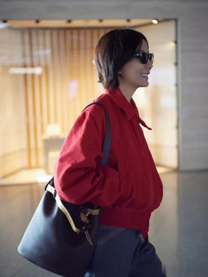 王珞丹机场私服真时髦! 穿红色夹克+直筒裤, 洋气又吸睛!